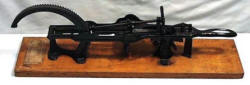 Another example pictured here is the Lightening, also known as the Quadrant, which is a clamp-on apple parer that also operates on a geared arc. This apple parer / peeler