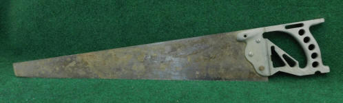 cast iron handle, and the same style blade locks as the marked saw above.