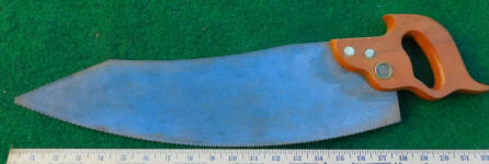 The fruitwood handle is damage free and very nice. The 16" 12 TPI blade is straight.
