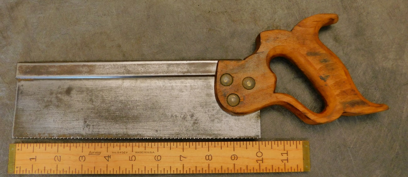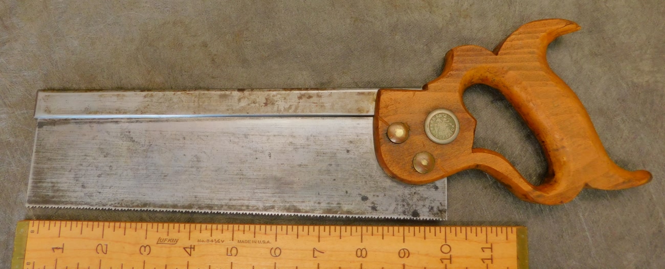 This unusual early Disston backsaw is pretty nice. The blade is straight and has a