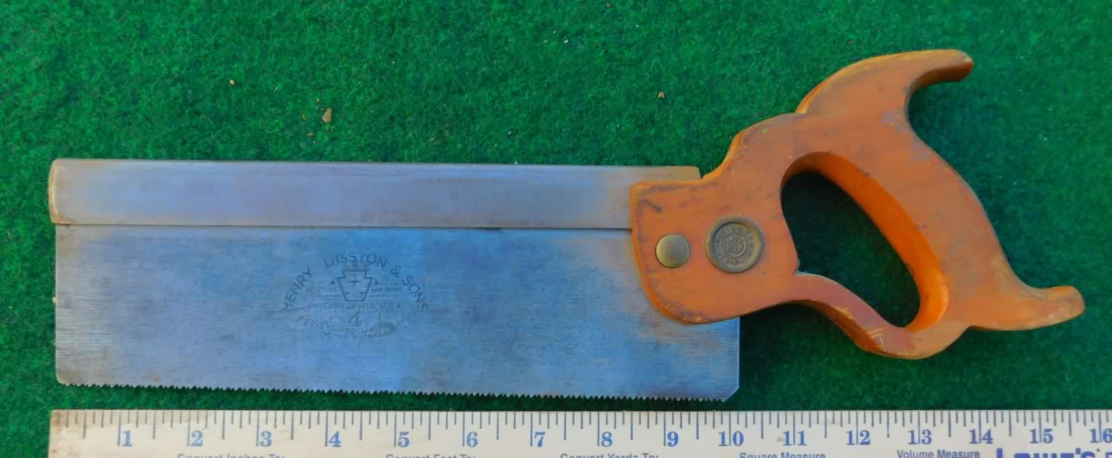 Lots of potential here for restoration that will produce a fine user saw. Good . . . . . . $30.00