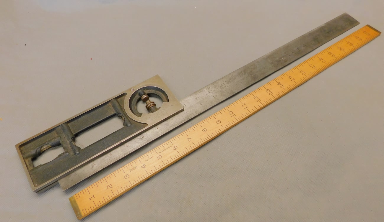 combination squares like those by Starrett. The rule is marked in inches on both sides and the layout