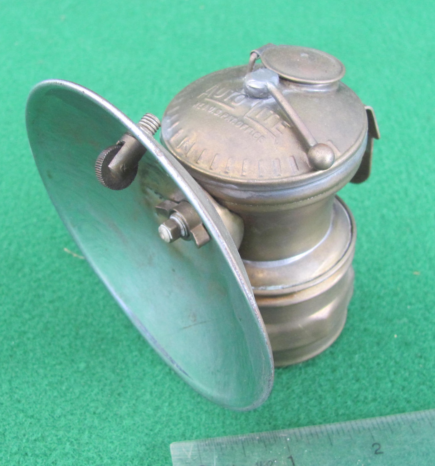 brass Auto-Lite carbide fired miners lamp is an earlier patent pending version with the