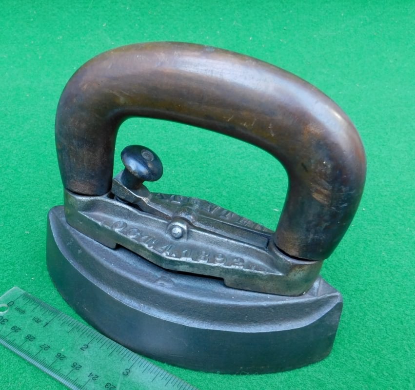 with the name and patent cast into the handle. Every iron collection