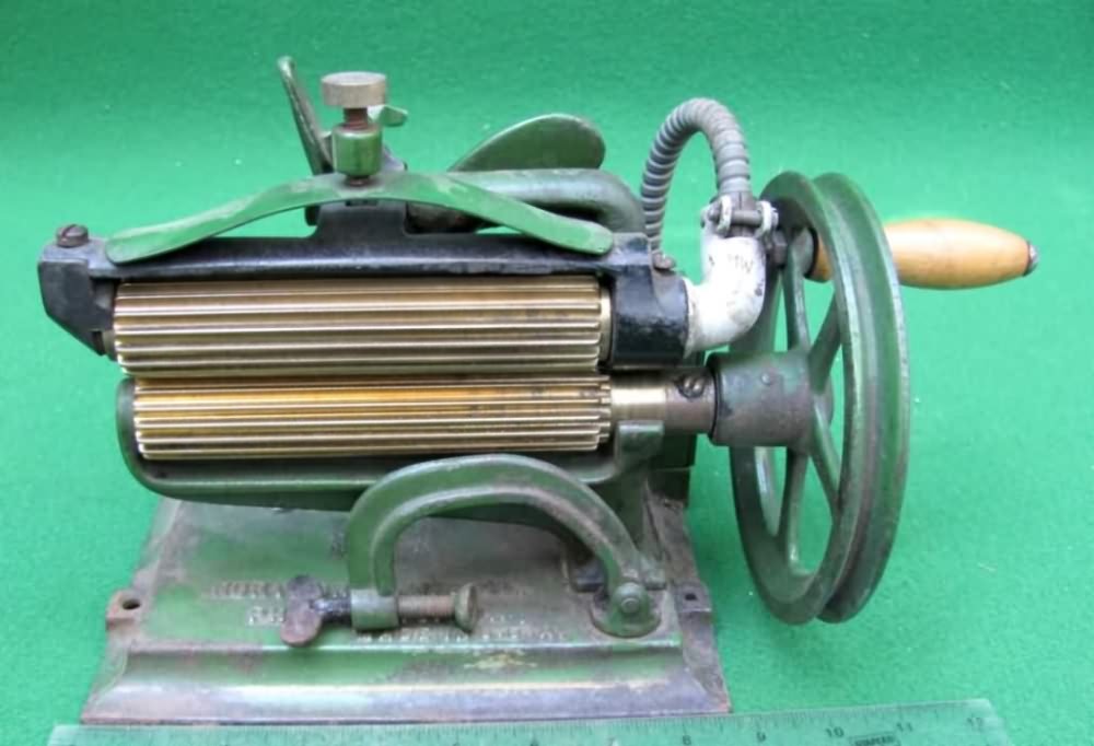 of a hand-crank machine fluter that combines fancy Victorian design with an