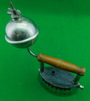 powered clothes iron claims the unusual feature of having the fuel tank designed as part of the handle. How well it actually worked might be debatable, but what is undeniable is that it has a wildly